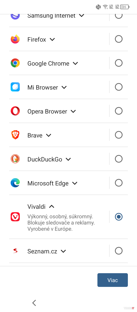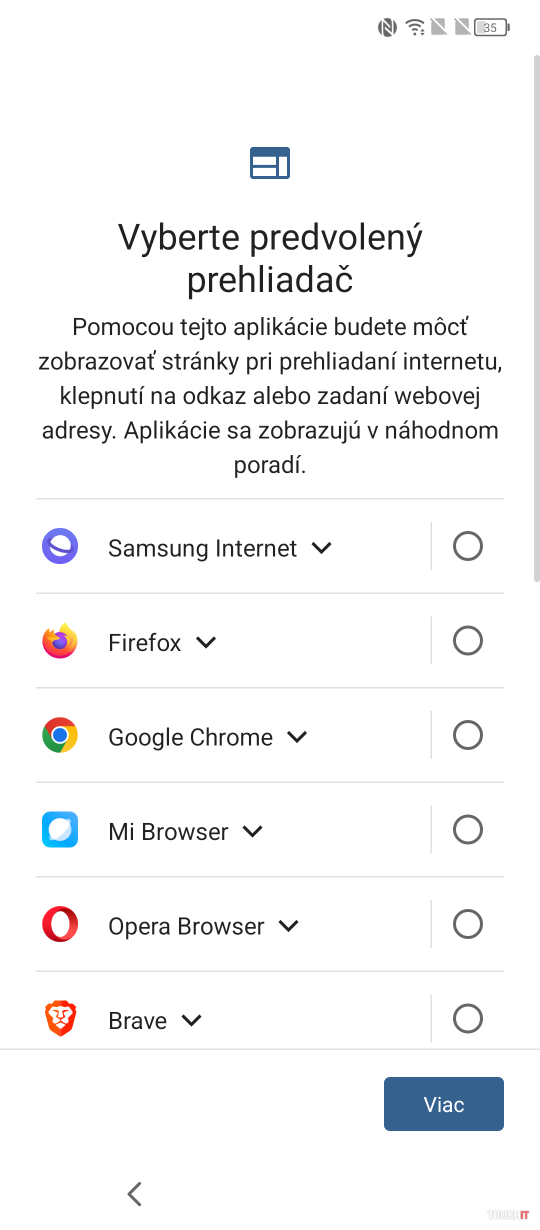Výber prebieha v troch krokoch. Najprv si zvolíte internetový prehliadač, ktorý bude slúžiť na zobrazovanie internetových stránok. Neznamená to automatické nastavenie ako hlavného prehliadača. To budete musieť urobiť neskôr, napríklad pri jeho prvom spustení. Po dokončení týchto nastavení sa konkrétna aplikácia stiahne do smartfónu. V prípade, že ju ešte nemáte nainštalovanú.
