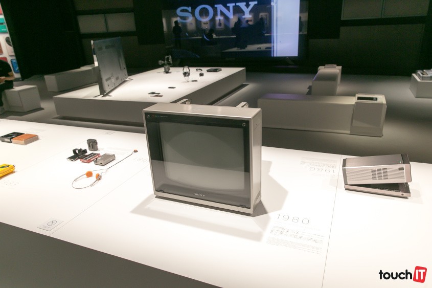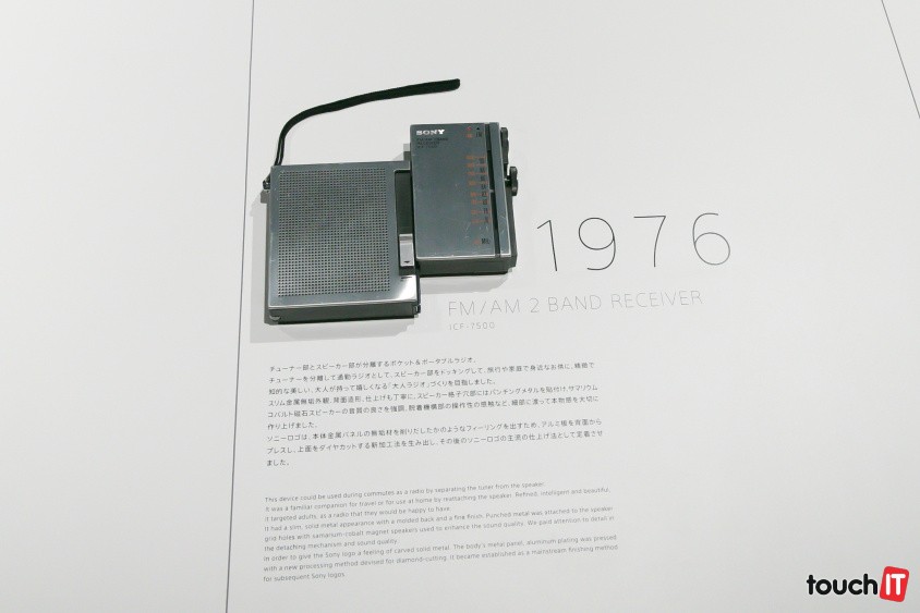 Teraz ale poďte s nami na najvyššie 8. poschodie, kde sa nachádza výstavka historických produktov pod označením Making Modern. Začíname v roku 1972, kedy Sony začalo experimentovať s mobilnými telefónmi. V tej dobe však až také mobilné zase neboli ….