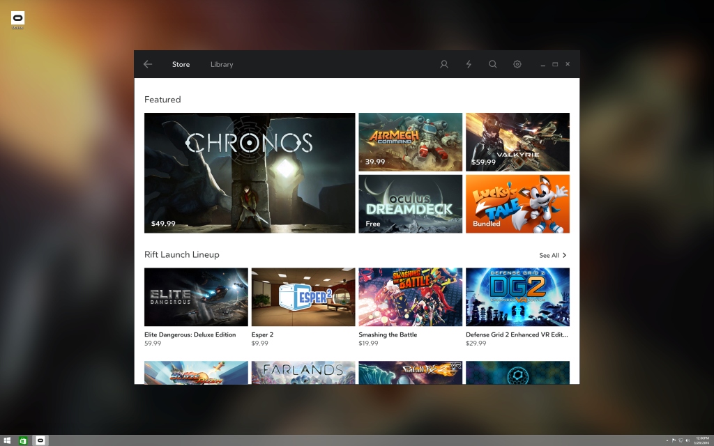 Obchod s hrami v rámci aplikácie pre Oculus Rift