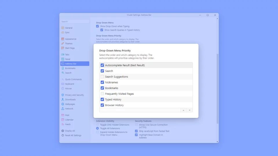 Inovovaný je aj adresný riadok. Teraz si môžete prispôsobiť poradie, v akom sa budú jednotlivé prvky zobrazovať. Ide o záložky, históriu písania, prezývky či napríklad históriu prehliadača. Je to detail, vďaka ktorému bude zobrazovanie zhody počas zadávania textu prehľadnejšie a nebudú sa zobrazovať kategórie, ktoré vidieť nechcete.