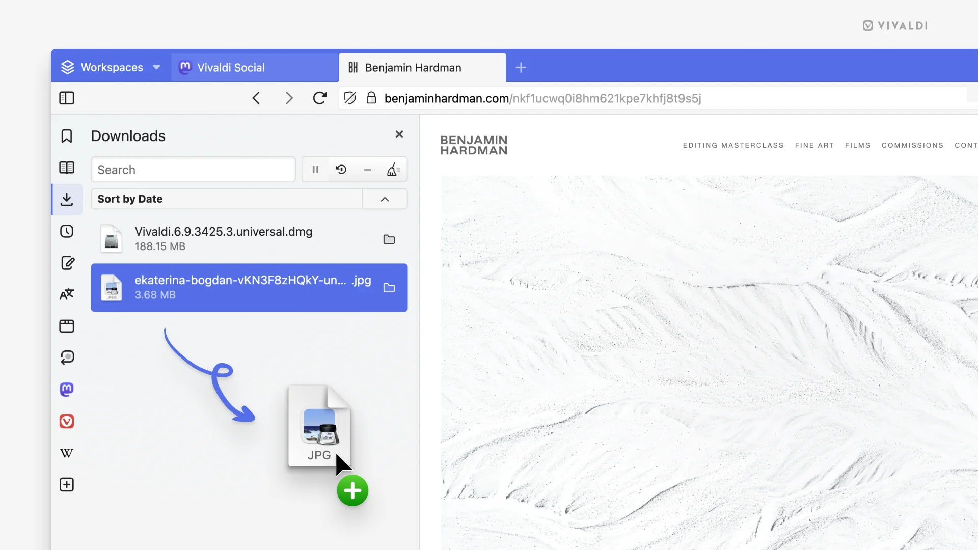 Nová aktualizácia do prehliadača Vivaldi prináša aj možnosť presúvať súbory priamo z panelu sťahovania na plochu, do priečinka alebo dokonca priamo do e-mailu či dokumentu. Tento nový spôsob interakcie so stiahnutými súbormi používateľov odbremení od ich manuálneho presúvania z priečinka na sťahovanie. Odteraz stačí súbor chytiť a presunúť ho na miesto, kde ho chcete mať. Pribudla dokonca možnosť viacnásobného označenia súborov, ktoré je takisto možné naraz presunúť, čo výrazne zjednodušuje prácu.
