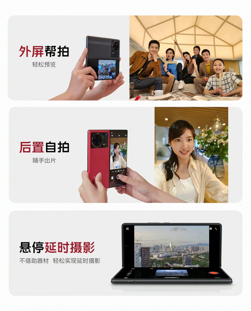 Skladacia novinka od spoločnosti vivo prináša vylepšené fotoaparáty ako výsledok spolupráce so spoločnosťou ZEISS. Tá zahŕňa optimalizáciu optiky, najmä pokiaľ ide o vylepšenú veľkosť objektívov vybavených charakteristickou vrstvou ZEISS T*, ktorá znižuje odlesky a zlepšuje prechod viditeľného svetla.