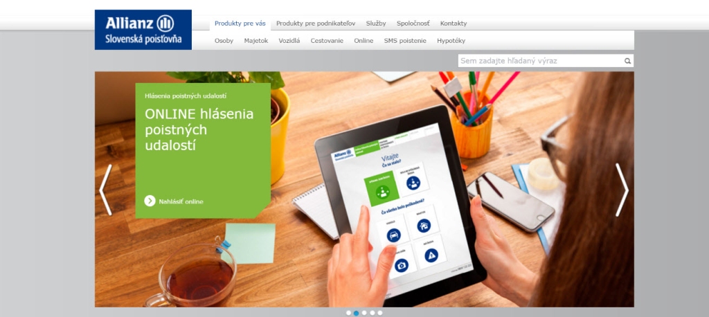 Hlavná stránka Alianz-SP presne informuje o novinka na on-line hlásenie poistných udalostí
