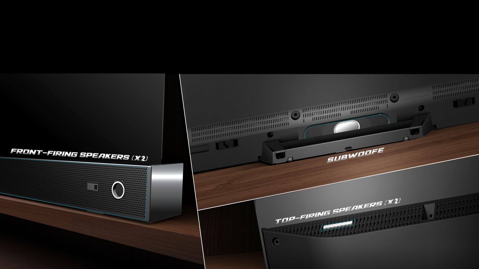Zaujímavým dizajnovým a technickým detailom je soundbar 2.1.2 s výkonom 120 W, ktorý je integrovaný do spodného okraja obrazovky. Ponúka priestorovú zvukovú technológiu Dolby Atmos®, takže sa pri sledovaní akéhokoľvek obsahu stanete sami súčasťou deja. To, že tieto nové TV prinášajú obrazový i zvukový zážitok ako v kine, potvrdzuje aj podpora formátu HDR 10+ i certifikačného kinoštandardu IMAX Enhanced.