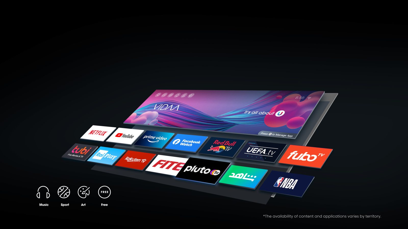 Nový rad TV využíva vlastnú inteligentnú platformu VIDAA U 5.0 SMART OS, ktorá je jednoduchá, čistá, intuitívna a pohotová a ponúka podporu pre streamovacie služby, napríklad YouTube, Netflix a Amazon Prime, na ovládači nájdete aj tlačidlo na rýchly prístup k Facebook Watch. Umožňuje využívať veľké množstvo predinštalovaných aplikácií vrátane českých (VOYO, Lepší.TV, SLEDOVÁNÍ TV, TV Seznam atď.) alebo aplikáciu Uefa.tv pre futbalových nadšencov, ktorú nájdete len na televízoroch Hisense. Filmových fanúšikov poteší FilmMaker Mode na prehrávanie filmov tak, ako ich zamýšľal režisér.