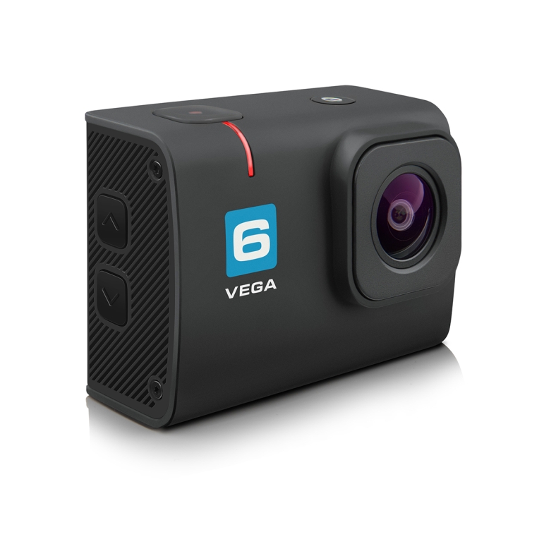 Táto akčná kamera zaujme kvalitným spracovaním a výbornými výsledkami, ktoré boli od prvého momentu prekvapením. VEGA 6 disponuje 12 Mpx snímačom so šírkou záberu 170°. Video dokáže nahrávať v max. rozlíšení 4K/30 fps, pričom jej nechýba ani šesťosá elektronická stabilizácia obrazu. Fotografie vytvára v max. rozlíšení 12 Mpx. V zadnej časti má 2“ LCD displej, ktorý nie je dotykový. Ovládanie je prispôsobené 4 tlačidlám po obvode zariadenia. V spodnej časti má krytý otvor pre 1050 mAh batériu. V ľavom boku je miesto pre microSD kartu (max. 64 GB) a nachádza sa tu aj microUSB port na nabíjanie a microHDMI. Kamera nie je odolná voči vode a prachu, ale v balení nájdete aj puzdro odolné voči prachu a vode do 30 metrov. Z bezdrôtovej konektivity je k dispozícii Wi-Fi, ktorá slúži na komunikáciu kamery s pribaleným diaľkovým ovládačom.