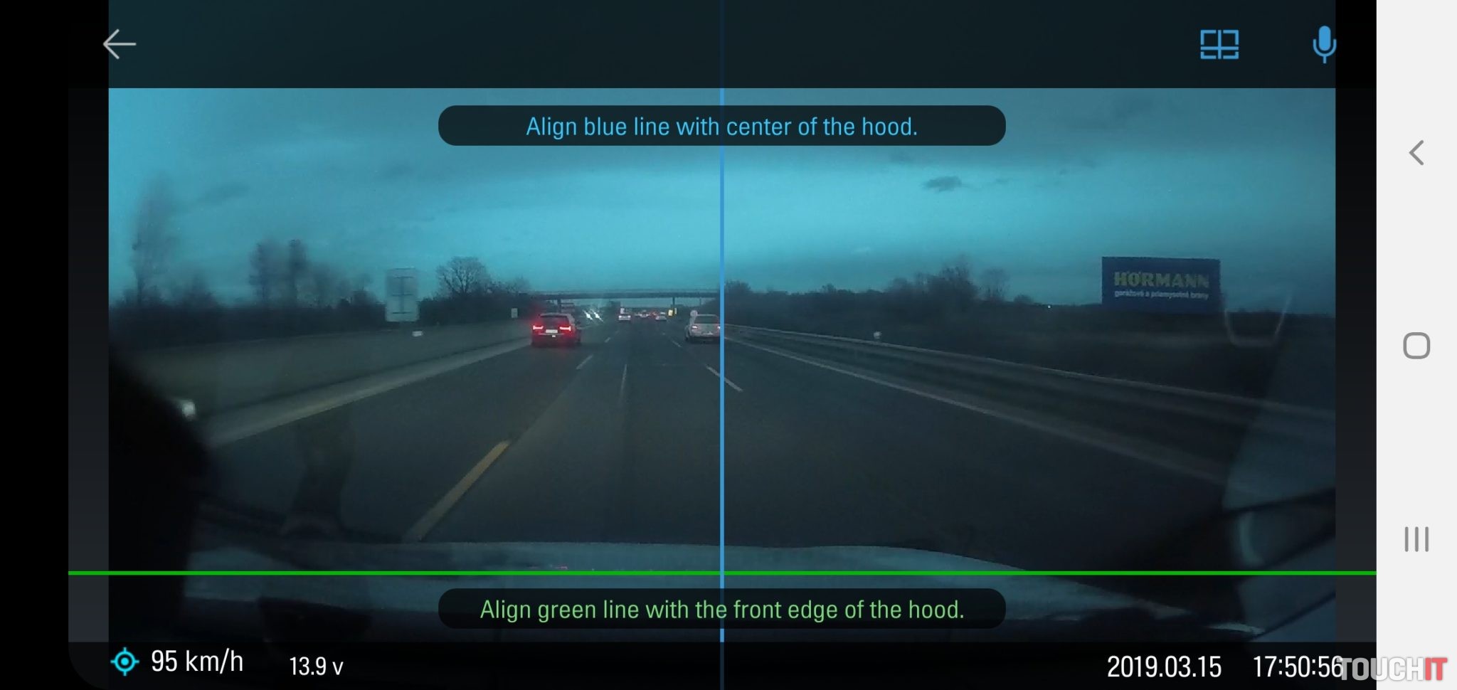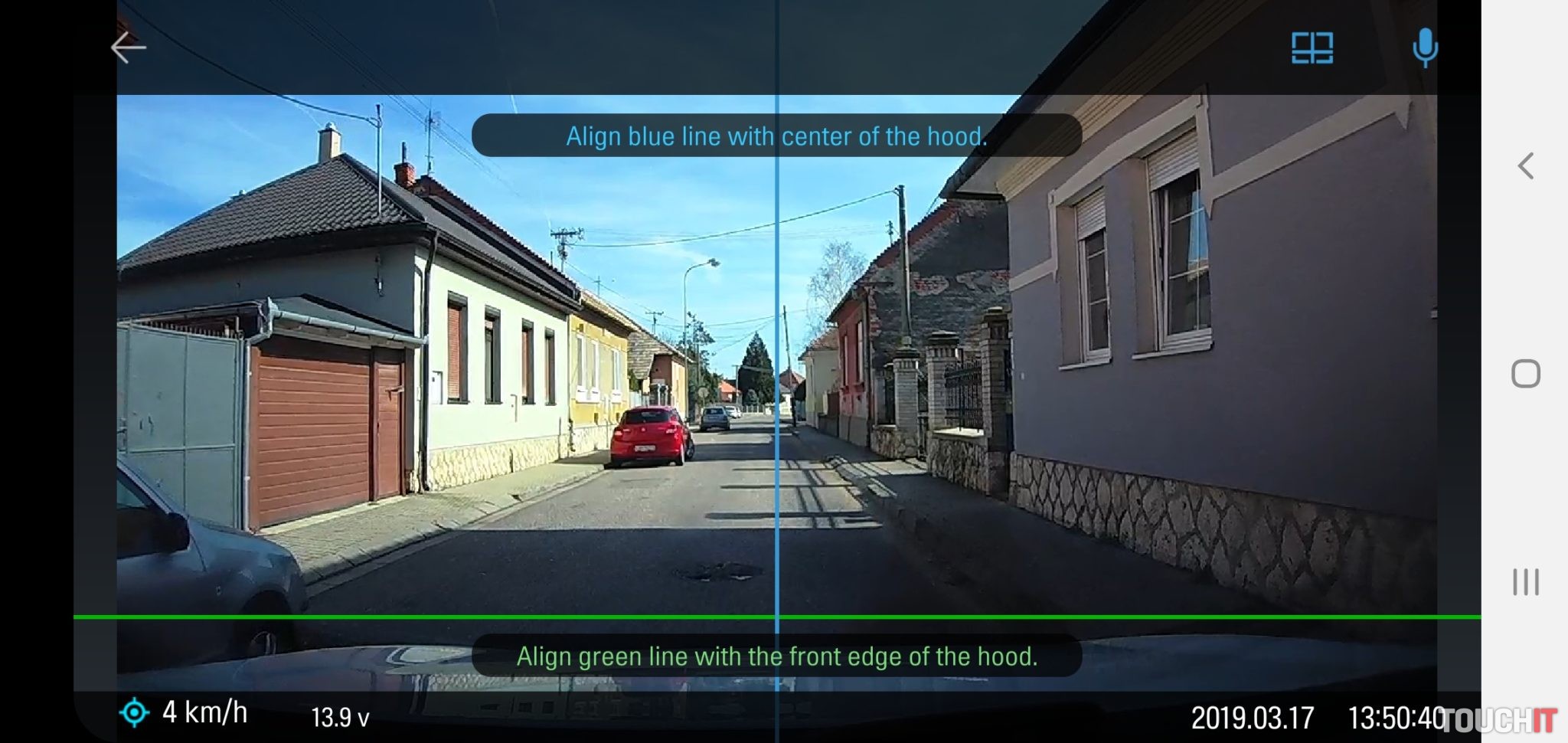 Potom už zistíte, čo vidí kamera a môžete presne nastaviť jej správnu polohu. Vertikálna pozícia sa dá meniť otáčaním objektívu kamery, horizontálna je však pevne daná tým, kde podložku pre kameru prilepíte. Mali by ste tak urobiť do stredu čelného okna.