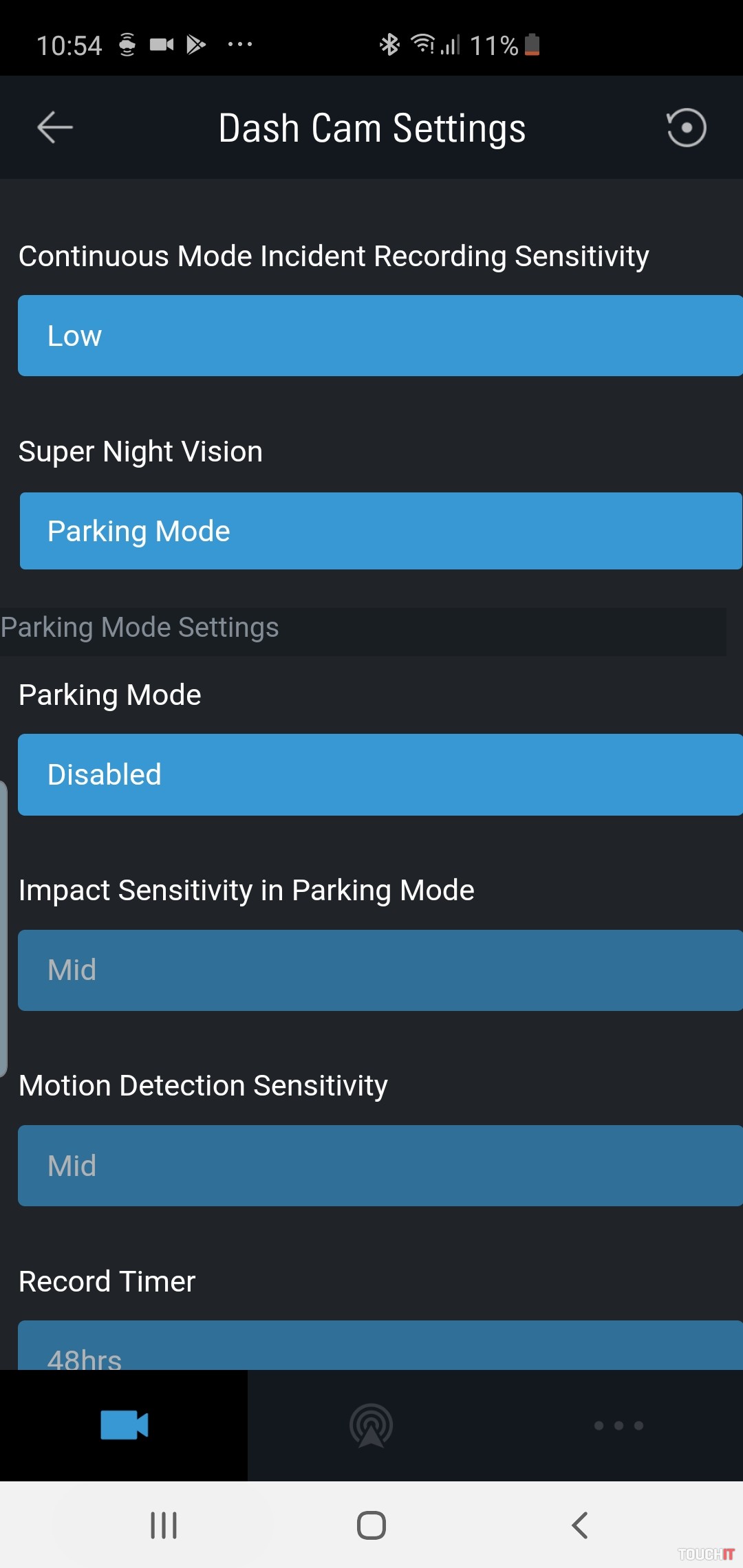 DVR-F800PRO udržuje auto pod dozorom pri jazde ale aj pri parkovaní. Ak sa po zaparkovaní zaregistruje pohyb s vozidlom, videozáznam sa uloží na microSD kartu a môžete si pozrieť, čo sa s autom dialo, resp. kto to urobil. Na to, aby vám parking režim fungoval, musí byť kamera pripojená nie cez cigaretový zapaľovač ale špeciálnym káblom na pevné pripojenie k vozidlu. Inštalácia kamery je jednoduchá, stačí na čelné sklo nalepiť podložku a k nej pripojiť kameru. V dodávke je 5 metrový napájací kábel s koncovkou na cigaretový zapaľovač a 3 metrový kábel na pevné zabudovanie do auta. U nás inštalácia do ata zabrala asi 10 minút. Predtým ako nalepíte kameru na správne miesto je však vhodné ju zapnúť a pripojiť k smartfónu. Takto si totiž overíte správne umiestnenie kamery.