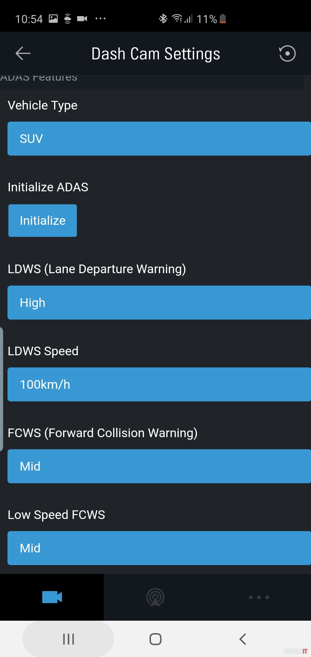 Jednotlivé vlastnosti tejto kamery si môžete nastaviť – napr. aká je kvalita záznamu, či sa má hlásiť prekročenie jazdného pruhu, aká je hlasitosť hlásenia a pod. Všetky nastavenia sa ukladajú na pamäťovú kartu, a teda ostávajú v platnosti aj po prerušení napájania kamery.