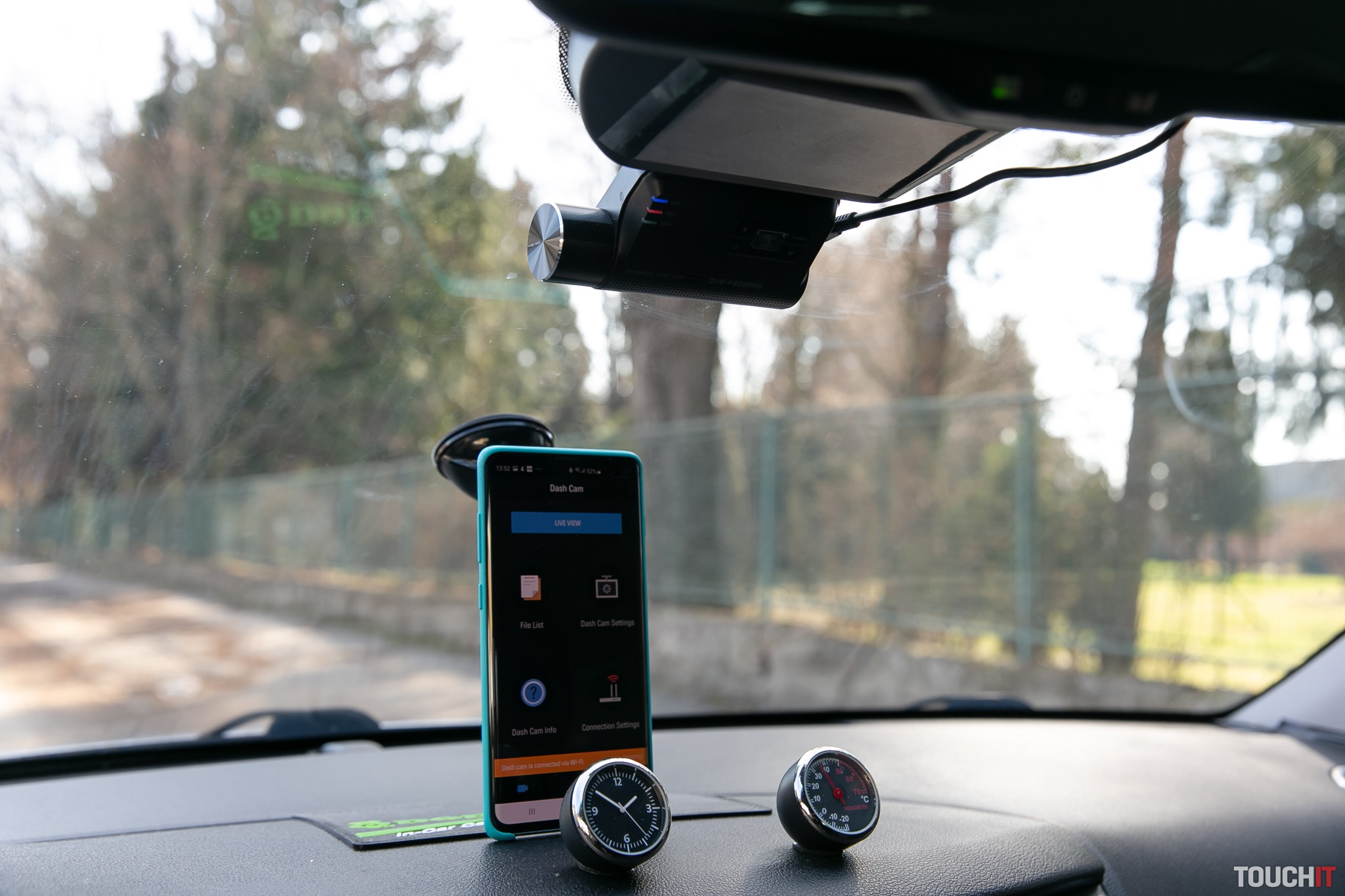 Na spojenie s kamerou je určená mobilná aplikácia Thinkware Dash Cam. Pomocou nej kameru jednak nastavujete ale tiež si overíte jej správnu polohu. Kamera je so smartfónom spojená napr. pomocou Wi-Fi pripojenia. Na to aby ste na smartfóne videli živý obraz z kamery musíte v tomto prípade vypnúť mobilné pripojenie na internet.
