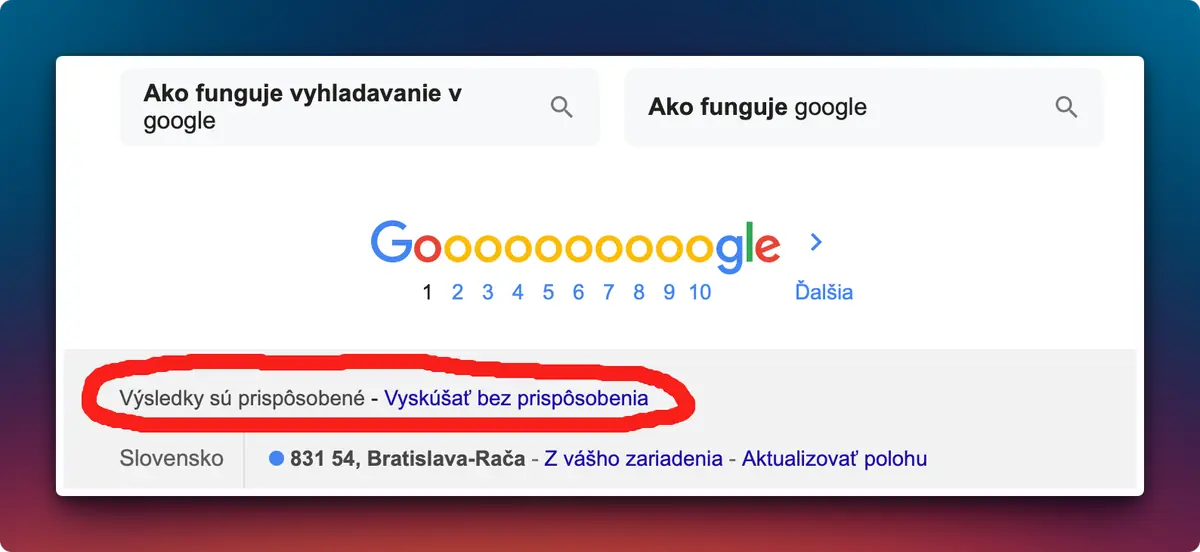 Ak používate Vyhľadávanie Google, možno ste aj vy pri vyhľadávaní nadobudli pocit, že výsledky generované vyhľadávačom sú nedostatočné, alebo až príliš zohľadňujú vaše predchádzajúce vyhľadávania. Google aj preto začal testovať novú funkciu, ktorá uľahčuje deaktiváciu personalizácie vo výsledkoch vyhľadávania. Táto novinka používateľom umožní pristupovať k neutrálnejším výsledkom, ktoré nie sú ovplyvnené ich osobnou históriou, kliknutím na odkaz „Skúsiť bez prispôsobenia“ v spodnej časti výsledkov vyhľadávania.