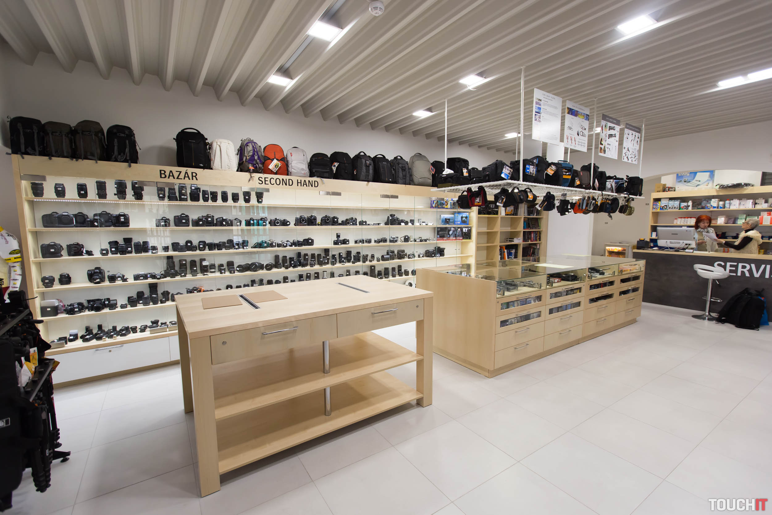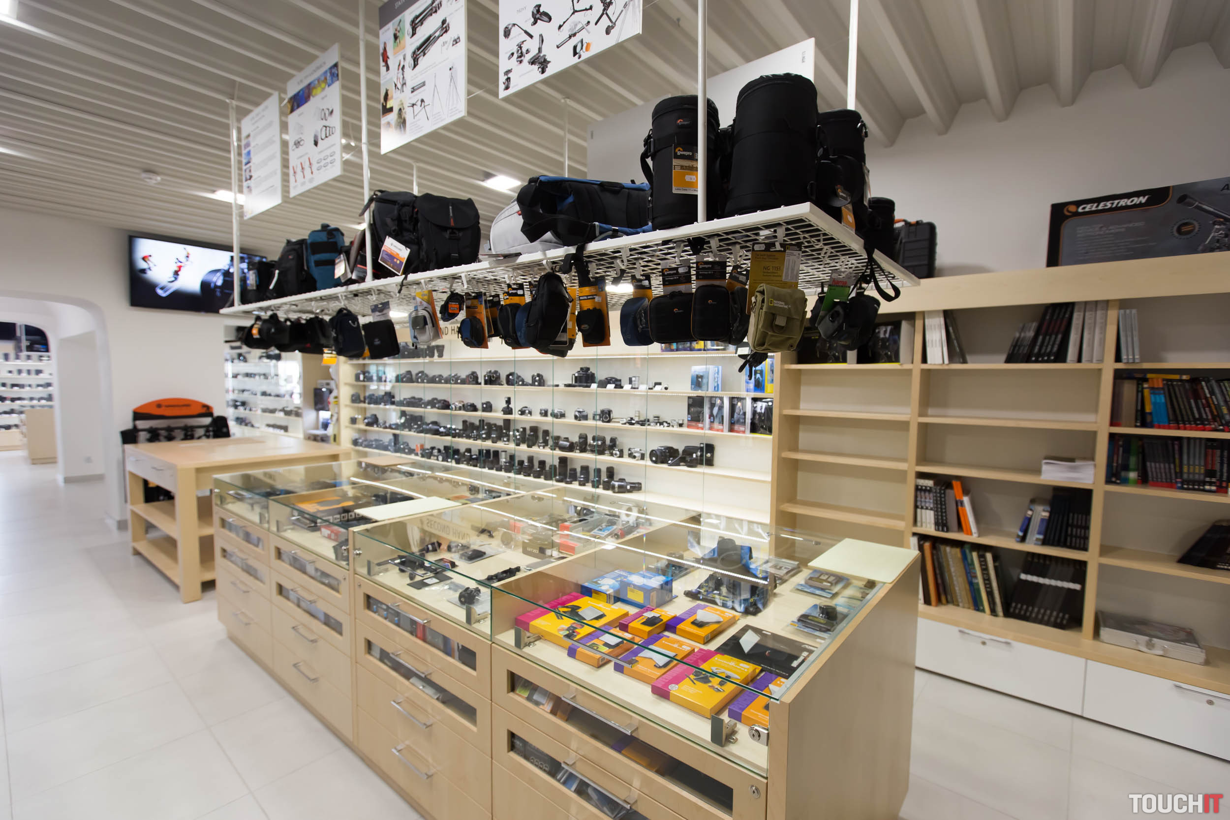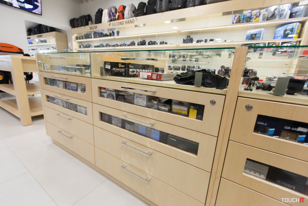 My sme sa sem boli pozrieť a tento priestor teraz naozaj vyzerá vzdušnejší a priestrannejší. Novinkou sú napr. špeciálne závesy na prezentáciu batohov alebo statívov. Nás zaujali aj zásuvky s priesvitnými čelami, takže môžete vidieť, čo sa v nich nachádza. Pripomeňme, že PRO.Laika má mimoriadne široký sortiment z hľadiska značiek ako je Canon a Nikon, ale tiež Olympus, Panasonic, Fujifilm, Manfrotto, Lowepro, Hama a pod.