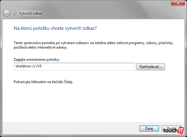 Po dvojkliku na nového zástupcu sa systém začne vypínať. Odporúčame zatvoriť všetky aplikácie pred vyskúšaním výsledku.