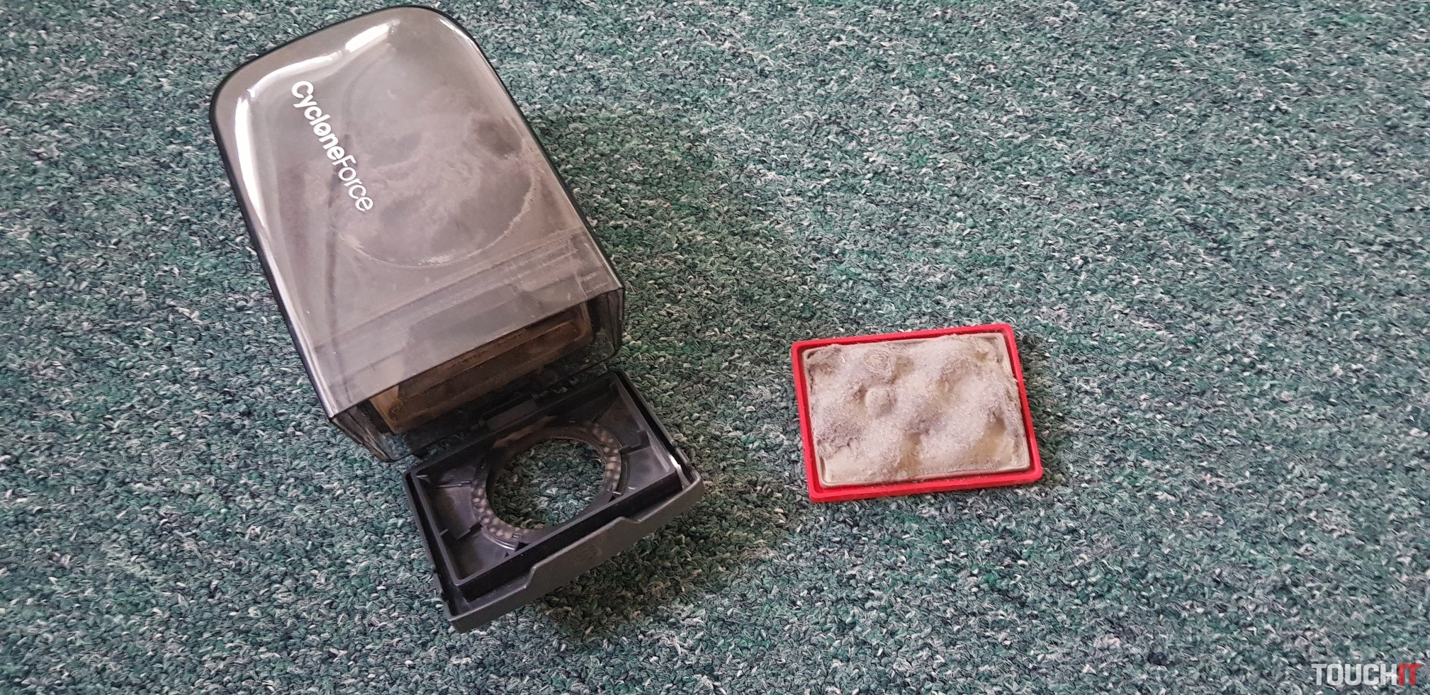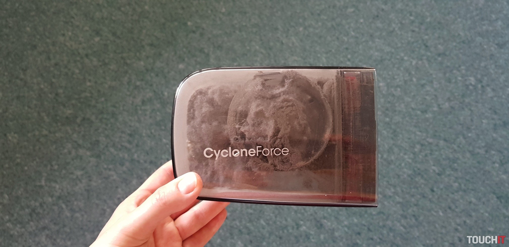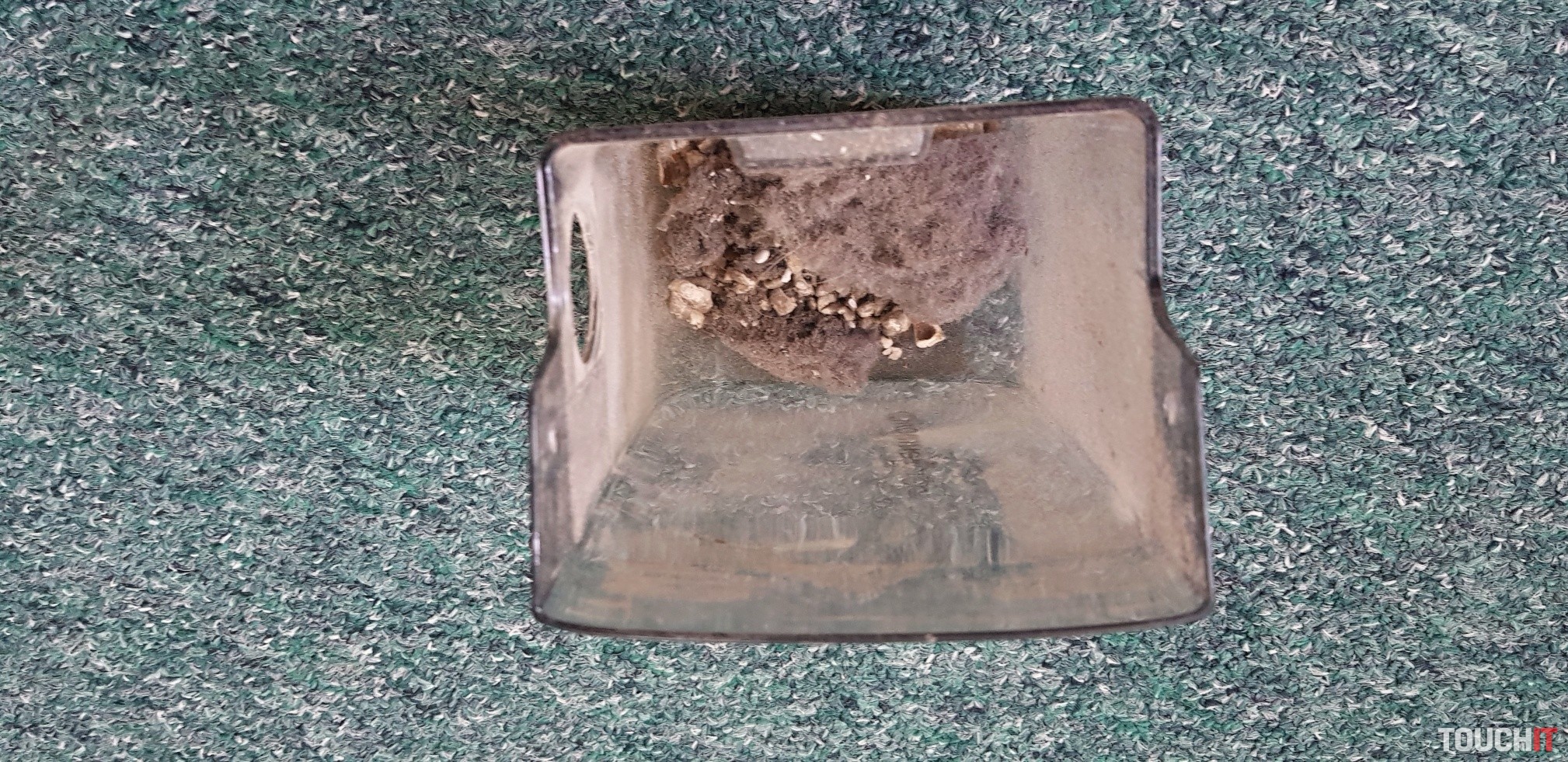 Na upratovanie využíva PowerBot VR20R7250WC silný 130 W motor. Doslova vidíte, ako sa vysávač prisaje ku kobercu a ťahá prach do svojho vnútra. Dôkazom je množstvo prachu, ktoré sme povysávali v testovacej miestnosti. To sme si mysleli, že je relatívne čistá.