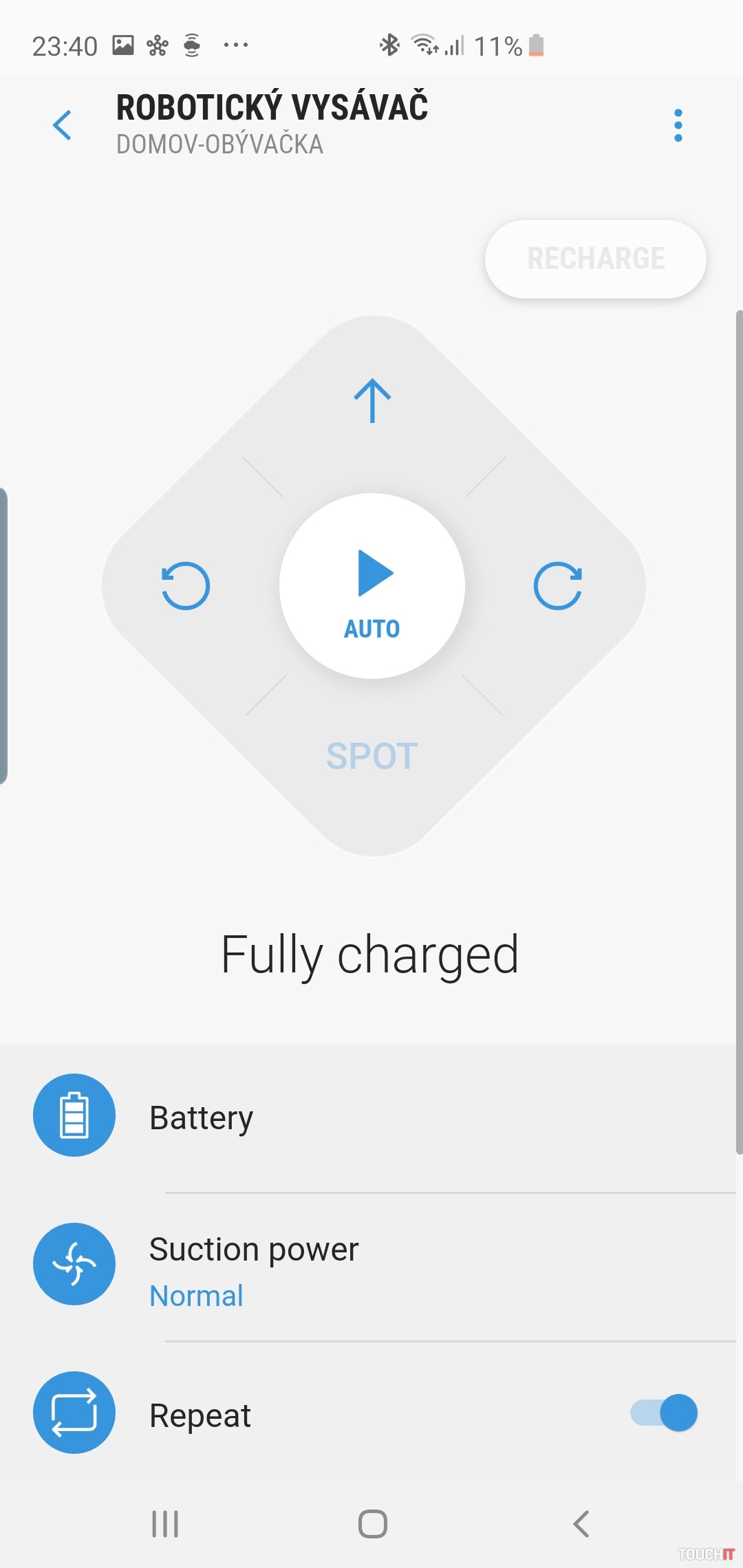 Ovládanie tohto robotického vysávača je najpohodlnejšie s využitím domáceho Wi-Fi s mobilnou aplikáciou Samsung SmartThings. Aby ste vysávač na prvý krát zaradili medzi smart veci, musíte mať pri sebe diaľkový ovládač. Po vyhľadaní vysávača môžete už diaľkové ovládanie odložiť a spustiť vysávač cez mobilnú aplikáciu aj na diaľku. Rovnako môžete cez aplikáciu zistiť kapacitu batérie, prípadne nastaviť tichý (menej intenzívnejší) režim vysávania.
