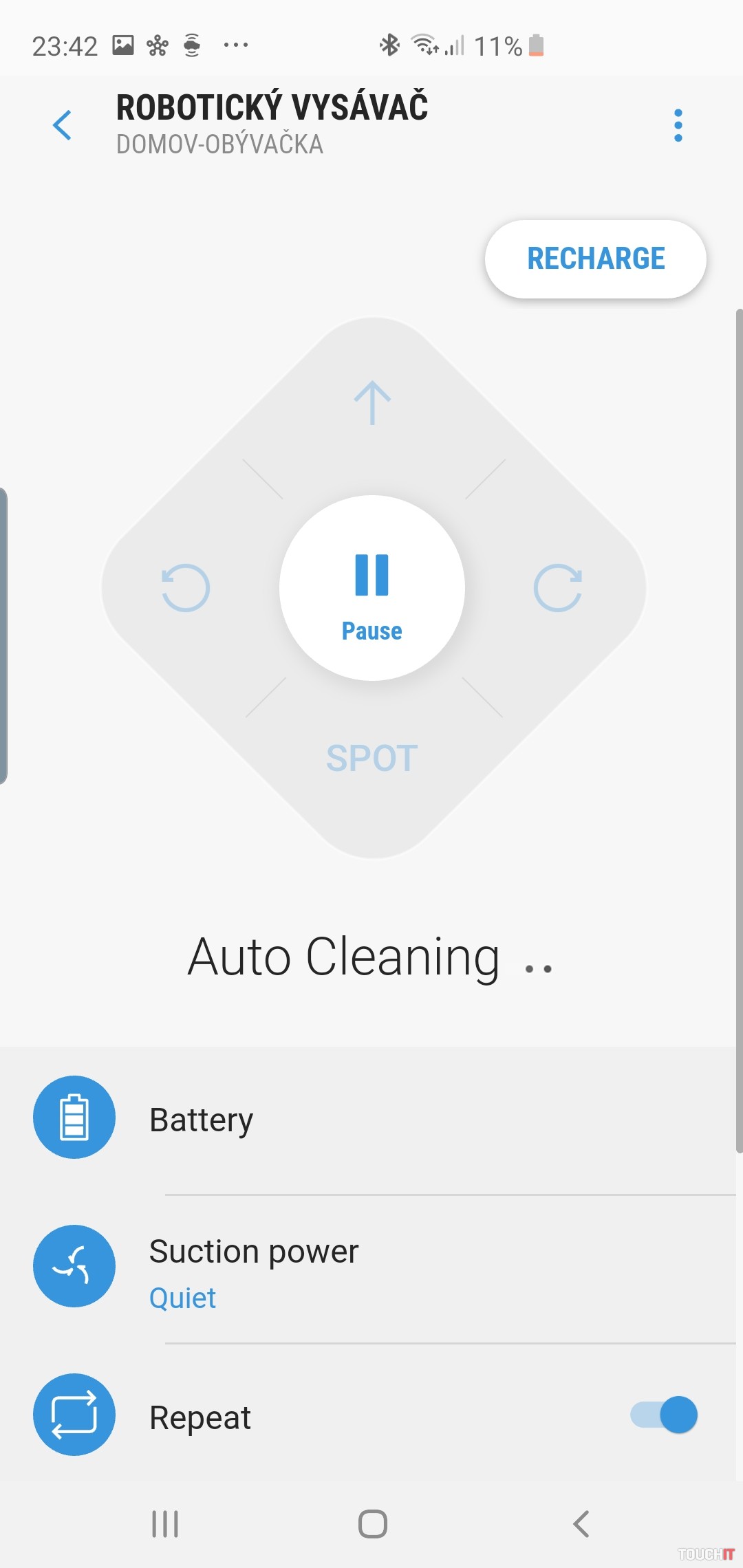 Na hodnej časti vysávača je informačný displej. Aj pomocou neho komunikuje vysávač so svojím okolím. Keď sa vysávač dostane k hrane miestnosti, vypíše sa na displeji označenie EDGE a to znamená, že spustí  výsuvnú lištu. Tá zabraňuje tomu, aby sa prach pri vysávaní o niečo vyššou intenzitou dostal pod vysávač. Vysávač tiež počas vysávania adaptívne mení výkon. Pre časti, ktoré sú zašpinené viac použije vyššiu intenzitu sania. Dotykovými tlačidlami pod displejom sa dá robotický vysávač spúšťať manuálne. Vhodnejší je na to ale diaľkový ovládač alebo mobilná aplikácia.