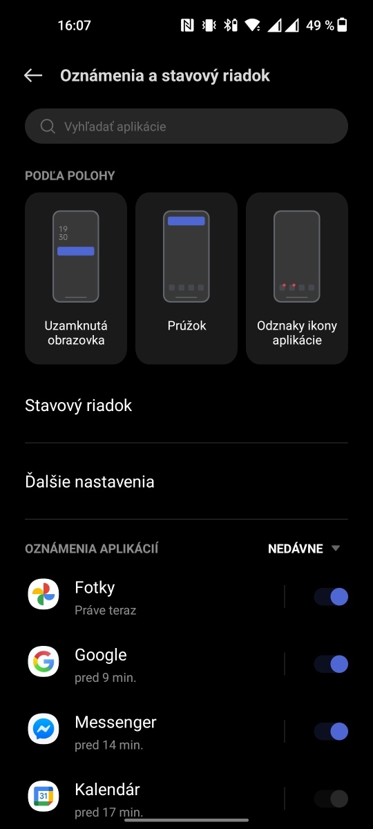 Otvorte Nastavenia – Oznámenia / stavový riadok – Ďalšie nastavenia – História oznámení
