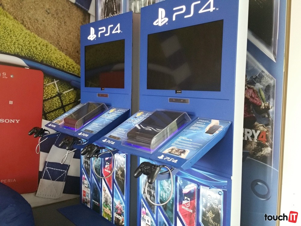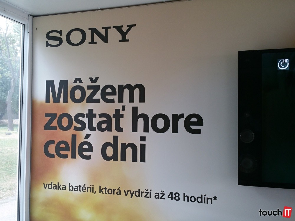 Stánok spoločnosti Sony sa nachádza medzi reštauráciami a na vyskúšanie je tu viacero modelov smartfónov a tabletov. Je tu 4K televízor s operačným systémom Android a tiež herná konzola Sony PS 4.