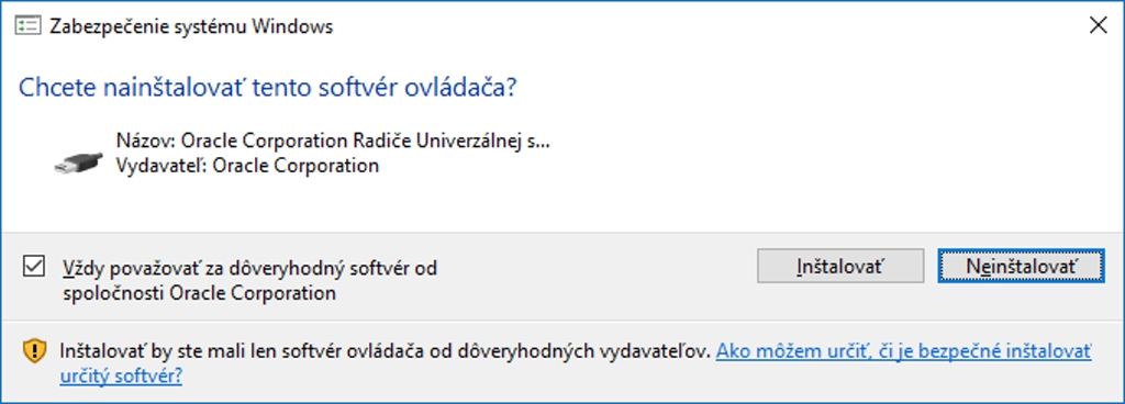 Vybrať si môžete Oracle VM VirtualBox alebo VMware Workstation. Prvé riešenie je zadarmo, druhé platené. Na prvotné pokusy bude asi najschodnejšie použiť práve VM VirtualBox. Inštalácia je v oboch prípadoch štandardná, ako pri inom softvéri. Jednou výnimkou bude potvrdenie inštalácie sieťového adaptéra. Ten zabezpečí premostenie vášho internetového pripojenia do emulovanej sieťovej karty na virtuálnom počítači.