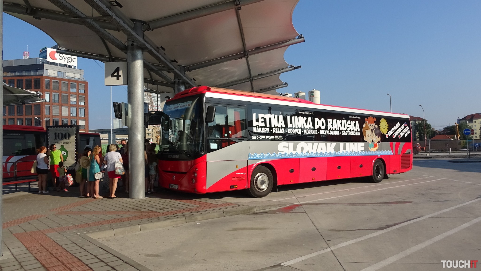 Na autobus sme nastúpili v sobotu ráno presne o 8 hodine, autobus stojí na nástupišti číslo 4 na Náhradnej autobusovej stanici Nivy. Autobus premáva tri dni z týždňa – v piatok, sobotu a v nedeľu. Okrem odchodu o 8 hodine odchádza aj o 13:00 a 18:00. V rámci Bratislavy zastavuje ešte aj na Einsteinovej ulici a to vždy o 5 minút neskôr.
