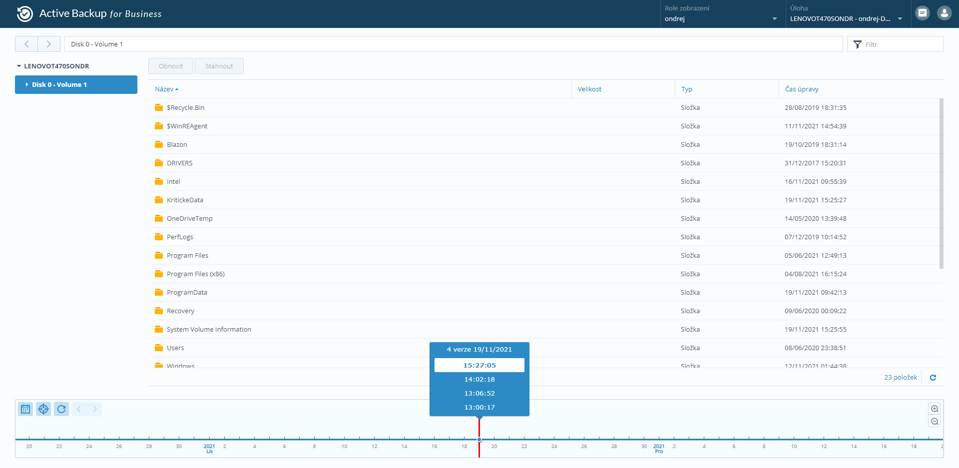 Obnoviť sa pritom dá súbor aj k určitému dátumu. Active Backup for Business totiž pracuje s inkrementálnymi zálohami a dokáže udržiavať viacero verzií. Systém Synology Drive je schopný pracovať až 32 verziami a ak si robíte zálohy každý deň, vrátite sa takto späť o celý mesiac.