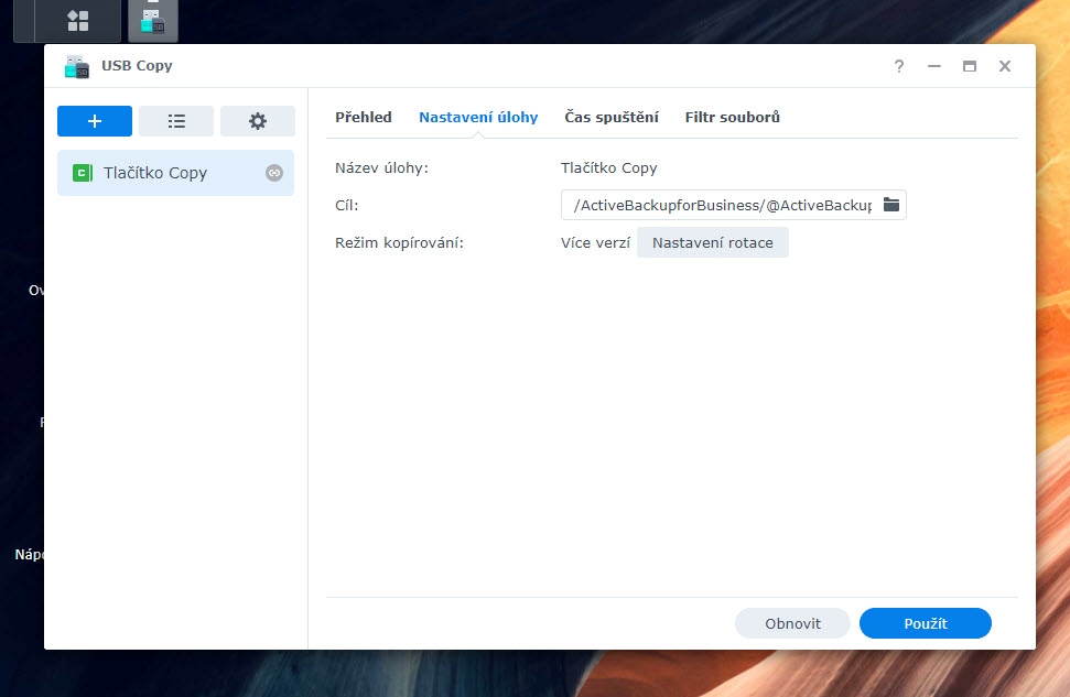 Pomocou aplikácie USB Copy zálohujete USB disky, cez adaptér pre SD karty môžete systém nakonfigurovať tak, aby sa automaticky zálohovali fotografie a videá vždy, keď do neho vložíte SD kartu.