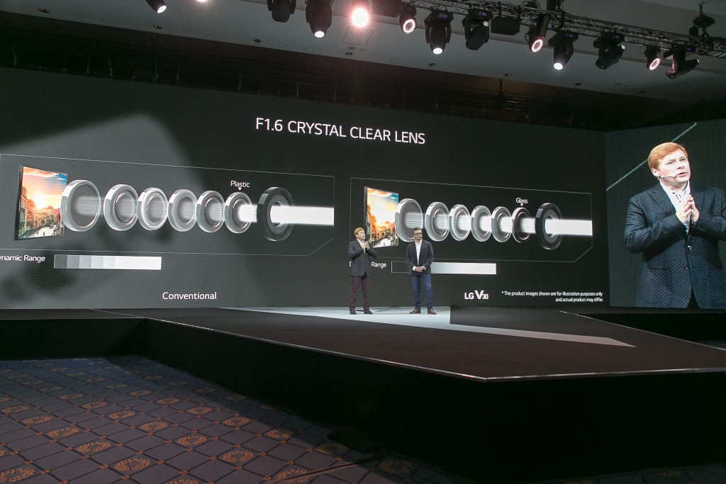 Telefón má QuadHD+ displej s rozlíšením 2880 × 1440 px a ide o OLED FullVision displej s podporou HDR10. Veľkosť displeja je síce 6“ v pomere strán 18 : 9, no telo telefónu odpovedá veľkosti 5,5“ telefónu. Snímač odtlačkov je na zadnej strane, podobne ako pri modeli LG G6. Fotoaparát je v konfigurácii 16 Mpx so špičkovou svetelnosťou f/1.6 doplnený o druhý fotoaparát s rozlíšením 13 Mpx a svetelnosťou f/1.9. Tento objektív je širokouhlý. Hlavný 16 Mpx fotoaparát má aj optickú a elektronickú stabilizáciu obrazu. Nechýba hybridné zaostrovanie s detekciou fázy. Predný fotoaparát je 5 Mpx. Kapacita pamätí je v klasickej kombinácii 4 / 64 GB, na vybraných trhoch bude dostupná aj verzia LG V30+, ktorá má 128 GB interné úložisko. LG rozhodne zapracovalo na zvuku. Model V30 má v sebe Hi-Fi Quad DAC prevodník a balenie telefónu obsahuje slúchadlá značky B&O PLAY. Pri nahrávaní zvuku je tu rozšírenie v podobe funkcie Receiver-as-a-Mic. Tá dokáže nahrávať aj veľmi hlasité zvuky a upravovať im dynamický rozsah tak, aby ste nemali zachytené len výšky na úkor nízkych tónov. Toto odstráni nepríjemný plechový zvuk, ktorý väčšinou máte na bežných telefónoch pri nakrúcaní koncertov. Sekundárny displej v LG V30 nie je, výrobca sa sústredil na rozšírenie prostredníctvom funkcie Always-on Display. Na vypnutom displeji získate informácie o aktuálnom čase a dátume vrátane notifikácií. Páčilo sa nám rozšírenie Floating Bar. Je to plávajúci panel, na ktorom môžete mať štyri aplikácie. Hodí sa pri telefonovaní alebo pozeraní videa či hraní hier. Všade tam, kde máte aplikáciou prekrytú celú obrazovku. Dá sa skryť a na displeji by nemal zavadzať. Uvidíme v praxi, ako bude tento doplnok použiteľný. Zatiaľ nám veci tohto typu skôr zavadzali. Batéria má kapacitu 3300 mAh. Na jej rýchle nabitie je tu podpora Quick Charge 3.0. O tom, že je to prvotriedny smartfón s najvyššou možnou výbavou, hovorí aj procesor Qualcomm Snapdragon 835, Bluetooth 5.0, Wi-Fi AC a ďalšie technologické lahôdky. Autentifikácia je zabezpečená okrem snímača odtlačkov aj rozpoznávaním hlasu a tváre. Telefón prežije aj pády na zem. Má totiž certifikáciu vojenského štandardu MIL-STD 810G a vďaka odolnosti IP68 ho môžete ponoriť aj do vody. Predná aj zadná strana má ochranné sklo Gorilla Glass 5. Cena ani dostupnosť V30 nebola oznámená a tieto informácie ostali najväčším tajomstvom výstavy IFA. Stánok LG bol venovaný hlavne OLED televízorom a firma to dokumentovala už samotným OLED tunelom, ktorý viacerým návštevníkom doslova bral dych.
