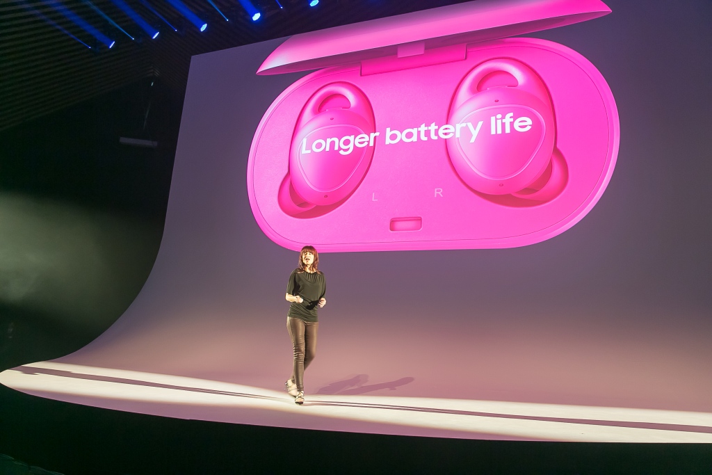 Zo segmentu Gear zariadení boli predstavené aj slúchadlá Samsung Gear IconX (2018). Tieto bezdrôtové slúchadlá umožnia streamovať hudbu z pripojeného telefónu alebo si ju uložiť priamo do 4 GB vnútornej pamäte.