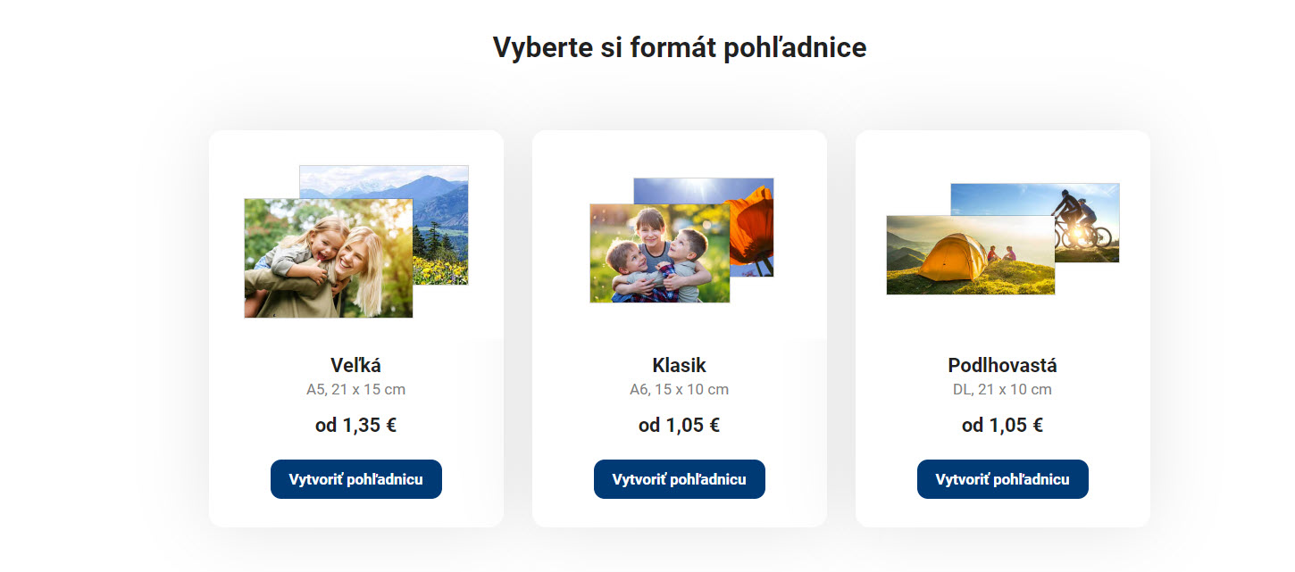 Personalizovanú pohľadnicu si môžete vytvoriť cez stránku www.mojapohladnica.sk. Vybrať si môžete z troch rôznych formátov pohľadnice – A6 (klasická s rozmermi 150 × 100 mm), A5 (veľká s rozmermi 210 × 150 mm) a DL (podlhovastá s rozmermi 210 × 99 mm). Pridáte vlastnú fotografiu alebo obrázok, prípadne využijete niektorú z pripravených šablón.