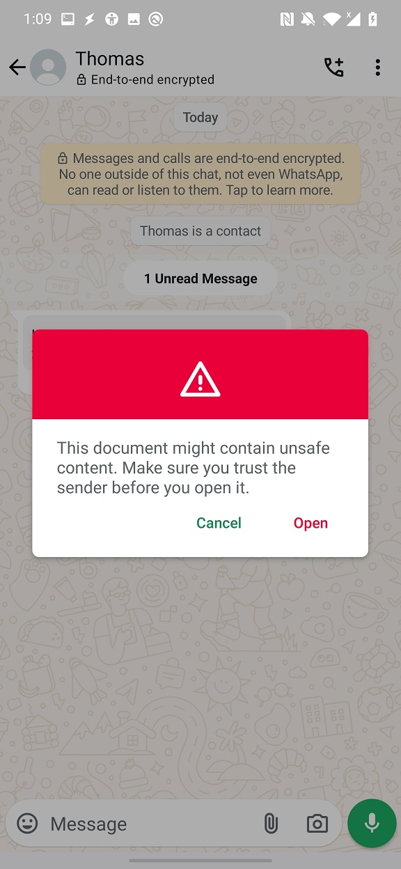 Analytik malvéru Mobile Hacker ukázal na sieti X, ako sa dá aplikácia zneužiť podvrhnutím falošného PDF súboru. Tento postup funguje vo verzii WhatsApp pre Android a je potrebné využiť rozhranie API. Nefunguje poslaním falošného PDF priamo, čo je dobrá správa. Aj preto sa Meta vyhýba označeniu, že ide o zraniteľnosť. Podobný prípad tomuto bol aj na Telegrame. Tam však išlo o závažnú chybu.