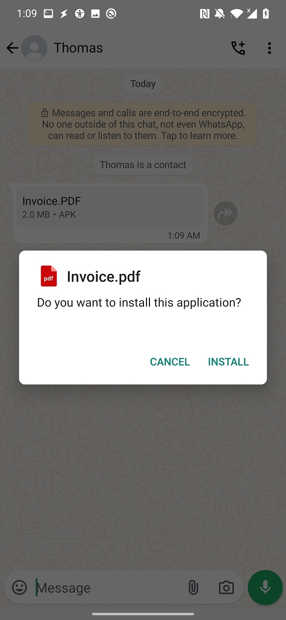 Používateľa, ktorý vie, čo je APK a PDF, môže zbystriť pozornosť. Používateľ vždy vidí, že nejde o PDF, keďže sa zobrazí systémové hlásenie o inštalácii programu. Tu je možnosť ho zavrieť. Akonáhle je tento postup potvrdený, do Androidu sa môže nainštalovať škodlivá aplikácia. Je jasné, že nejde o priamu chybu WhatsAppu a ani systému. Ten po povolení nainštaluje aplikáciu na vyžiadanie používateľa.