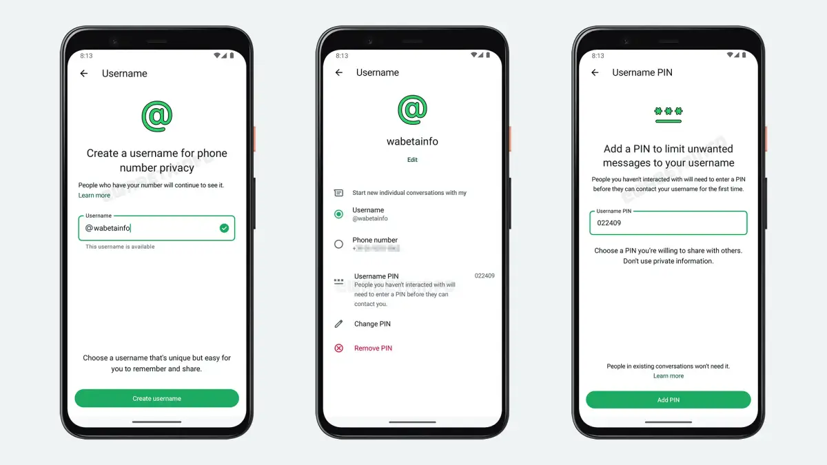 Výhodou nových prezývok však bude aj lepšia kontrola nad tým, kto s vami bude komunikovať. WhatsApp totiž pripravuje aj akési heslá, ktoré budú zložené z číslic. Aktuálne sa táto možnosť nazýva PIN k používateľskému menu, pričom tento PIN si budete môcť nastaviť a zmeniť kedykoľvek. Slúžiť bude k spojeniu na WhatsAppe, kde vás už nebude môcť len tak kontaktovať cudzia osoba.