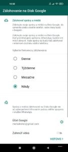 Tu odporúčame vybrať niektorú z troch možností frekvencie zálohovania resp. zvoliť poslednú možnosť Nikdy, ak nechcete svoje dáta z aplikácie presúvať na Google Disk. Ako na to, popisujeme bližšie v článku o zálohovaní na WhatsAppe.