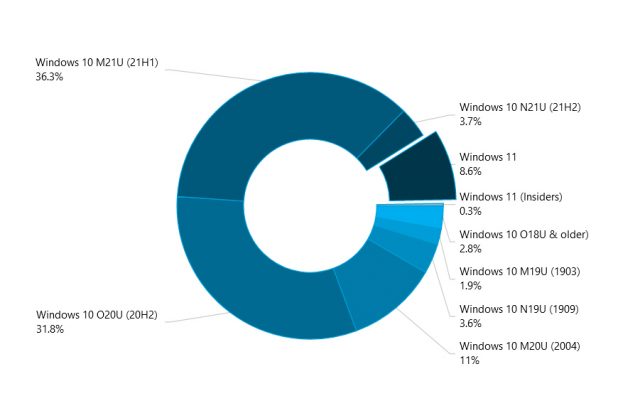 Podľa štatistík webu AdDuplex má teraz podiel 8,6 % a k tomu môžeme pripočítať 0,3 % podielu z verzie Insider. Windows 10 je na tom lepšie, no hovoríme o systéme, ktorý je tu s nami viac ako 6 rokov a nie dva mesiace.