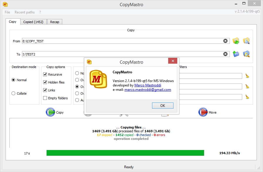 Cez príkazový riadok sa dá použiť program xcopy, no pohodlnejšie bude využiť niektorý z grafických programov ako napríklad FastCopy, TeraCopy alebo CopyMastro.