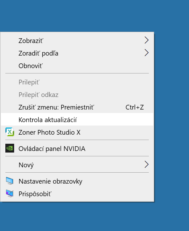 Aktualizácie systému sa dajú skontrolovať aj z kontextového menu.
