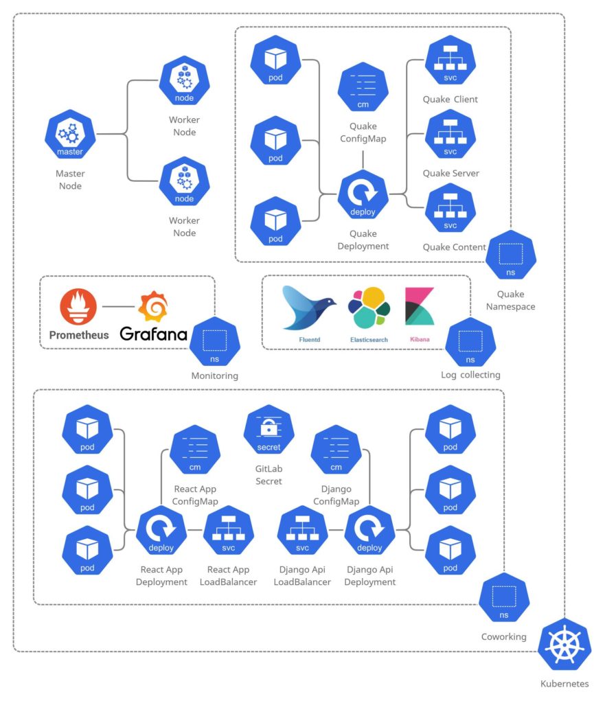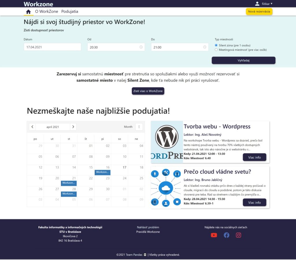 Vyhradené miesta v knižnici či na chodbách boli (v časoch, keď sa ešte chodilo do školy) často obsadené. Aj preto na fakulte vzniká nový coworkingový priestor, ktorý bude slúžiť študentom, zamestnancom aj návštevníkom fakulty. Coworkingové centrum WorkZone bude vybavené novo-vytvoreným rezervačným systémom, ktorý okrem rezervácie miest poskytuje aj kalendár a archív podujatí konajúcich sa v týchto priestoroch. Rezervačný systém bude spolu s ostatnými, už existujúcimi aplikáciami, ktoré sa využívajú pri výučbe na našej fakulte súčasťou Kubernetes klastra, ktorý rieši ďalšie problémy študentov ako napríklad nedostupnosť týchto aplikácií. Našim cieľom bolo zjednotiť vzdelávacie aplikácie do spoločnej platformy.