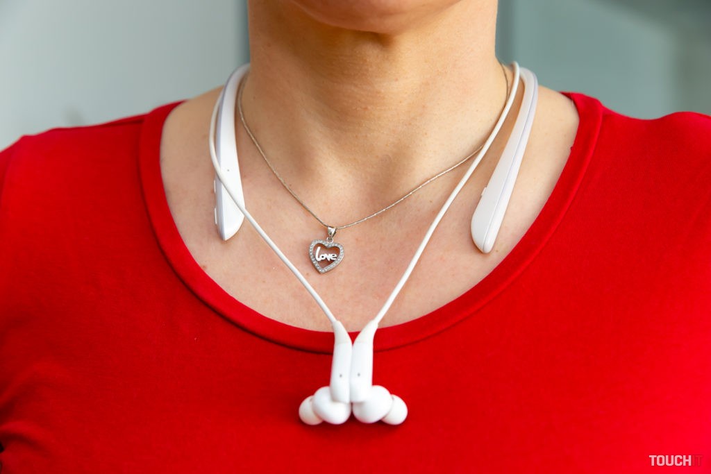 Tieto slúchadlá nám prišli do redakcie na test a v prvom momente vyzerali ako pre mimozemšťana. Skladajú sa z pevnej plastovej konštrukcie v tvare písmena U a zo štupľových slúchadiel, ktoré sú pripojené ku konštrukcii káblikmi. Takto tvarovaná konštrukcia je ideálna na umiestnenie okolo krku a jej zakrivenie kopíruje tvar krčnej chrbtice.
