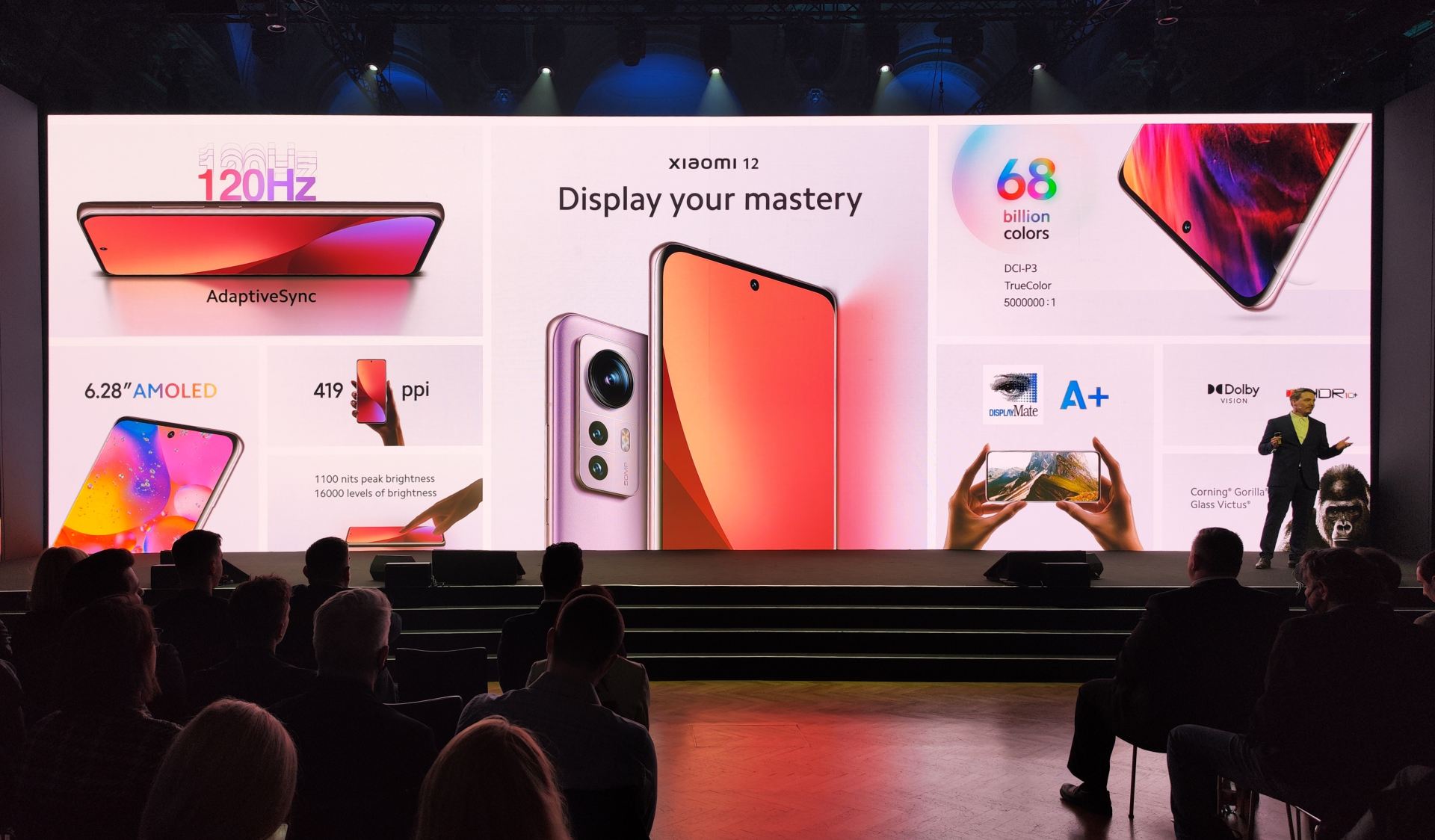 Všetky tri zariadenia ponúkajú žiarivé zobrazovanie na AMOLED Dot displeji s podporou TrueColor s hodnotením A+ podľa DisplayMate. Displej je vybavený sklom Corning Gorilla Glass Victus odolným voči poškriabaniu. Telefóny podporujú štandard Dolby Vision a HDR 10+. Vlajková loď Xiaomi 12 Pro má certifikát SGS Eye Care Display Certified na ochranu zraku hlavne hráčov.