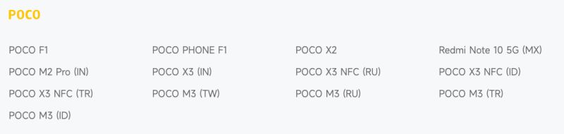 POCO smartfóny, ktoré už nie sú podporované