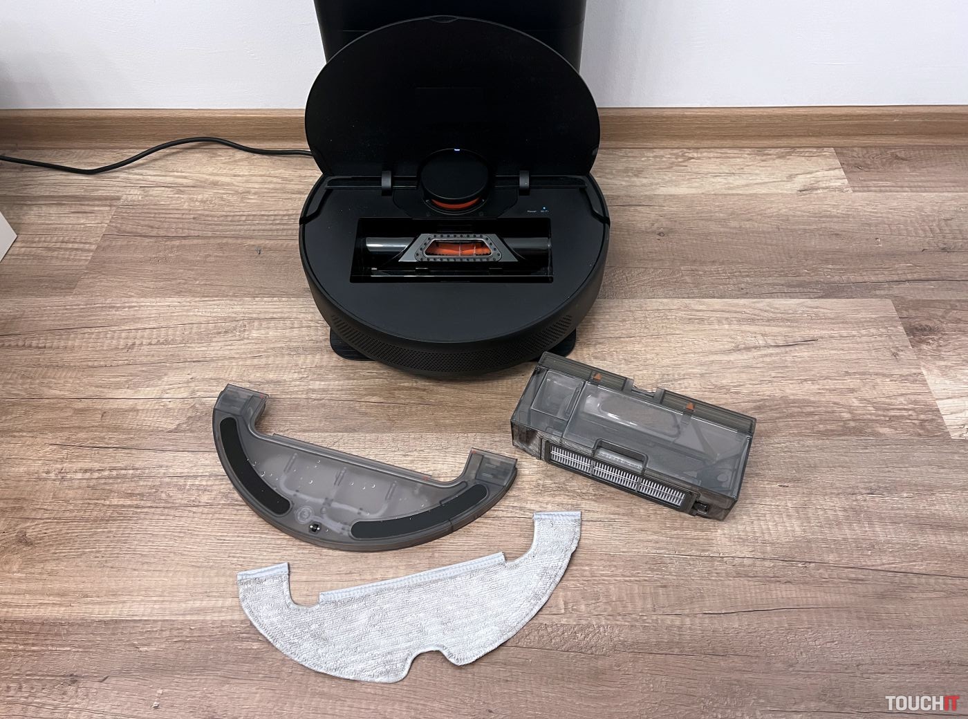 Dokovacia stanica patrí medzi rozmerovo väčšie (468 × 397 × 285 mm) a pod môj IKEA stolík sa nezmestila. Obsahuje 4-litrové vrecko na prach, čo v mojom prípade vystačí na 3 až 4 mesiace pravidelného vysávania v 3-izbovom byte. Súčasťou balenia je 400 ml nádobka na prach, ktorú je potrebné vložiť do robotického vysávača – v opačnom prípade sa nebude vedieť Mop 2 Ultra automaticky vyprázdniť.