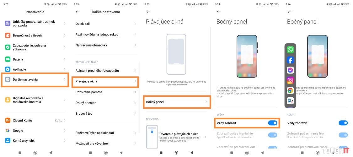 Efektivitu práce na vašom smartfóne vám môže vylepšiť aj bočný panel, ktorý dokáže vyvolať plávajúce okná. Ak sa teda chcete rýchlo dostať k nejakej aplikácii a využiť možnosti multitaskingu, tak si aktivujte bočný panel, ktorý budete mať poruke v každom prípade. Bočný panel prišiel do Xiaomi smartfónov s nadstavbou MIUI 13, využijú ho teda aj staršie telefóny. Aktivujete ho nasledovne.