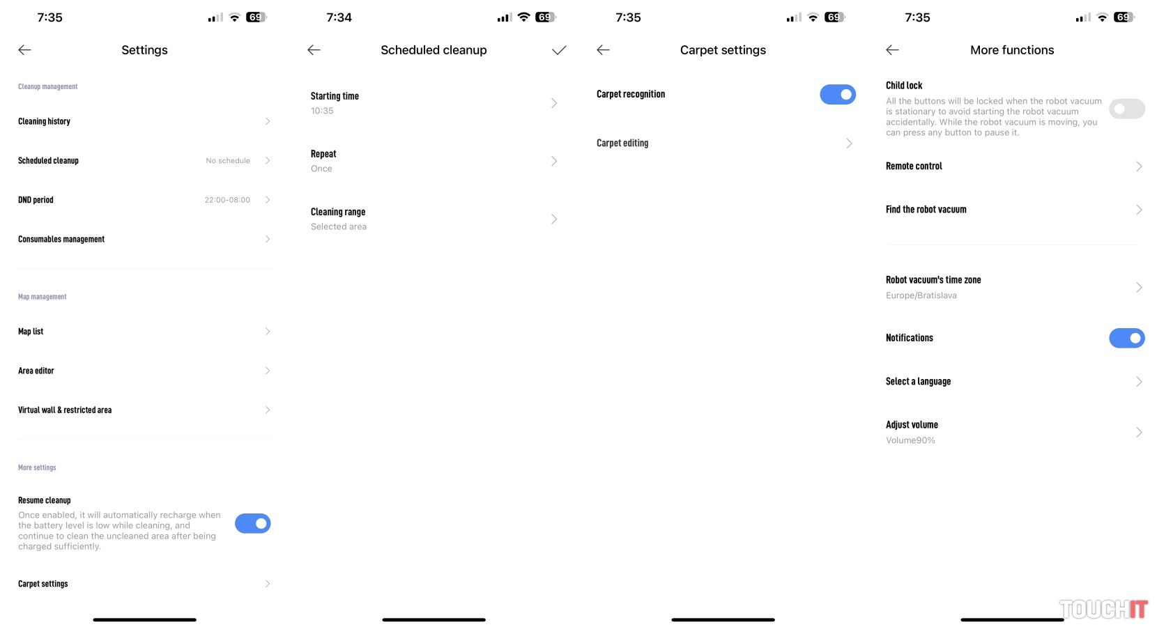 Osobne to nepovažujem za negatívum, nakoľko ovládanie vysávača je intuitívne, avšak rozumiem, prečo by niekto ocenil preklad do slovenčiny. V aplikácii si môžete nastaviť výkon vysávania, intenzitu vlhkosti a prispôsobiť si harmonogram, kedy bude vysávač automaticky upratovať. Režim upratovania sa v takomto prípade nastaví podľa toho, či pred začatím upratovania pripevníte k vysávaču mopovacie kotúče alebo nie.