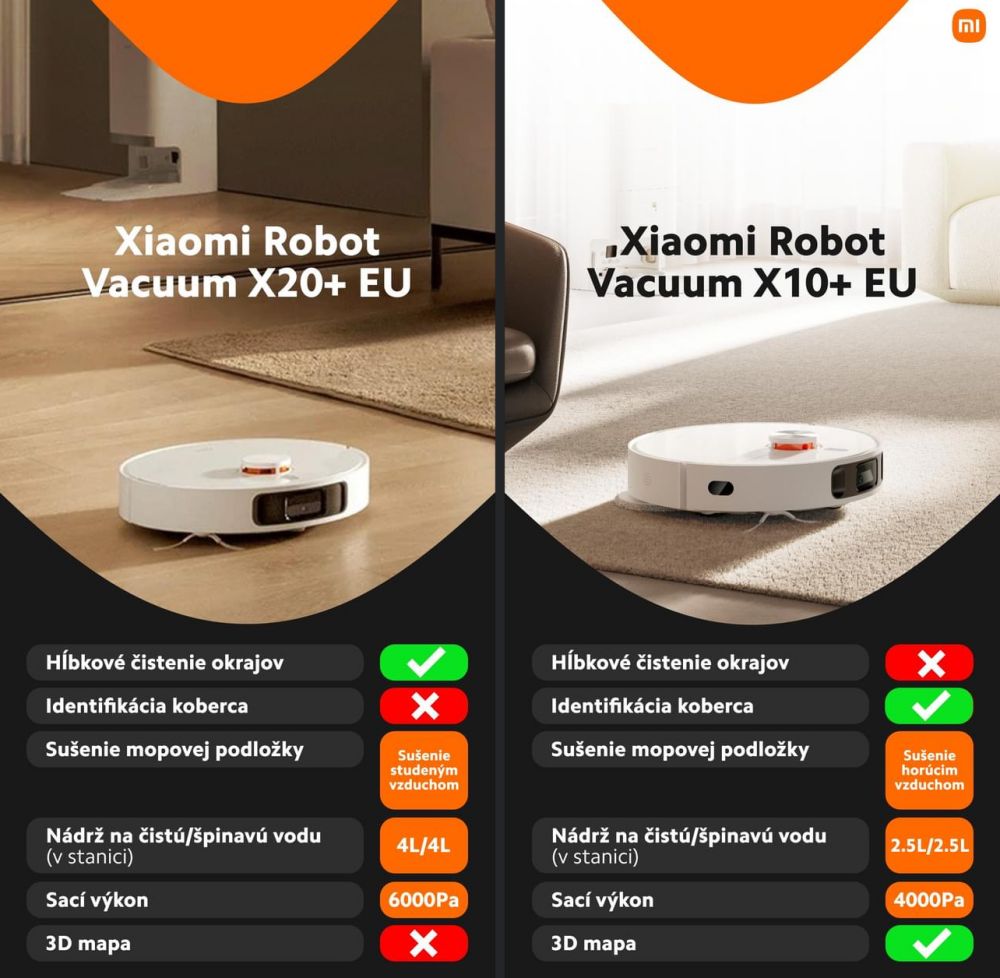 Doplnené 27. mája 2024: Na Slovensku je už v predaji aj nová generácia, model Xiaomi Robot Vacuum X20+, ktorý je cenovo atraktívnejší. Kľúčové rozdiely si môžete pozrieť na obrázku: