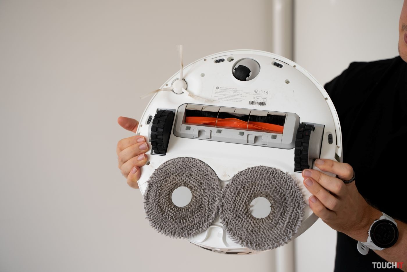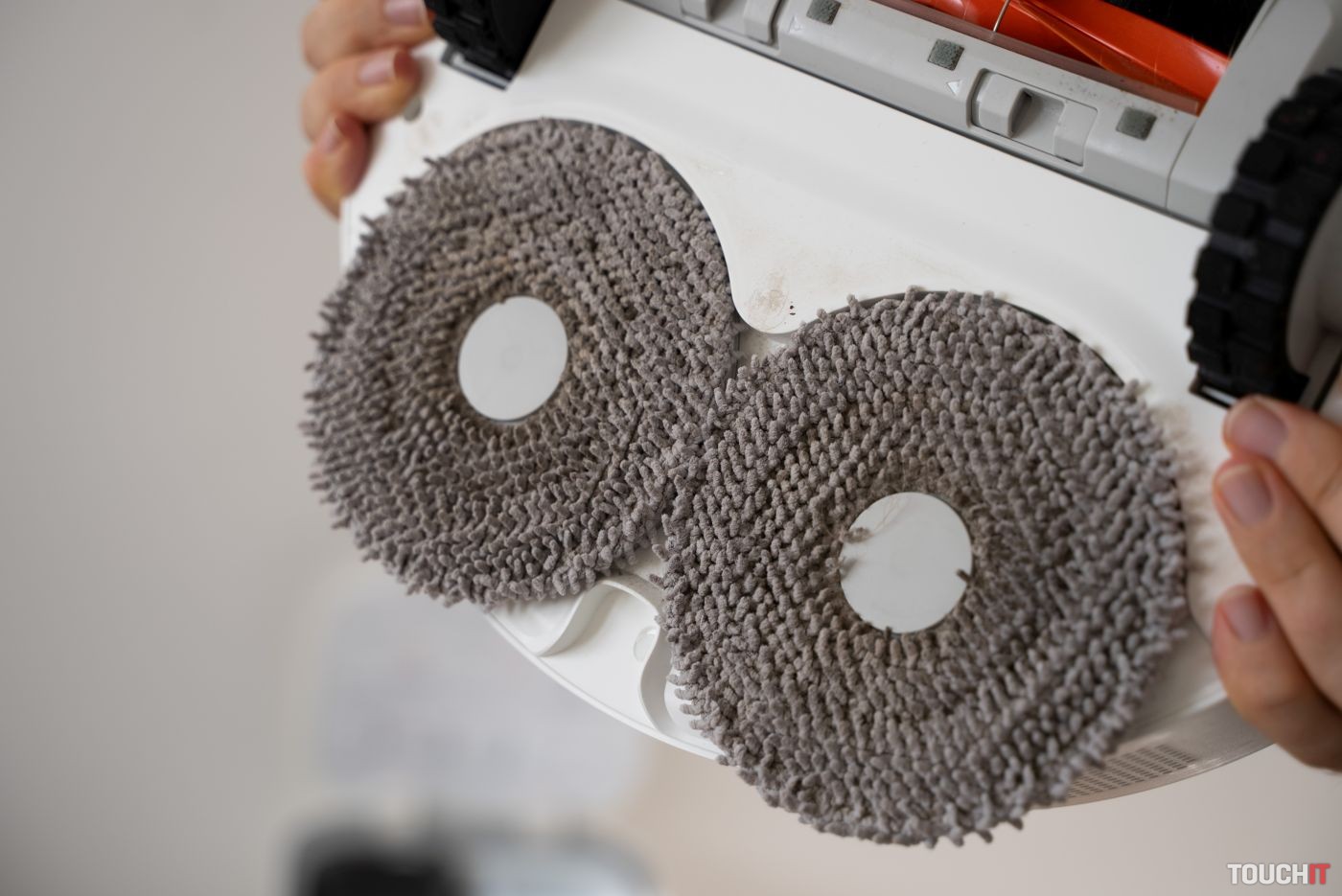 Robot Vacuum X10+ sa od ostatných robotických vysávačov, ktoré som testoval, odlišuje dvoma mopovacími kotúčmi. Tie sa pripoja k zadnej spodnej časti vysávača, pričom sú navrhnuté tak, aby boli k vysávaču neustále pripojené. Nie je teda potrebné vybrať ich z vysávača po skončení mopovania, resp. v prípade, že chcete, aby vysávač iba vysával a nemopoval.