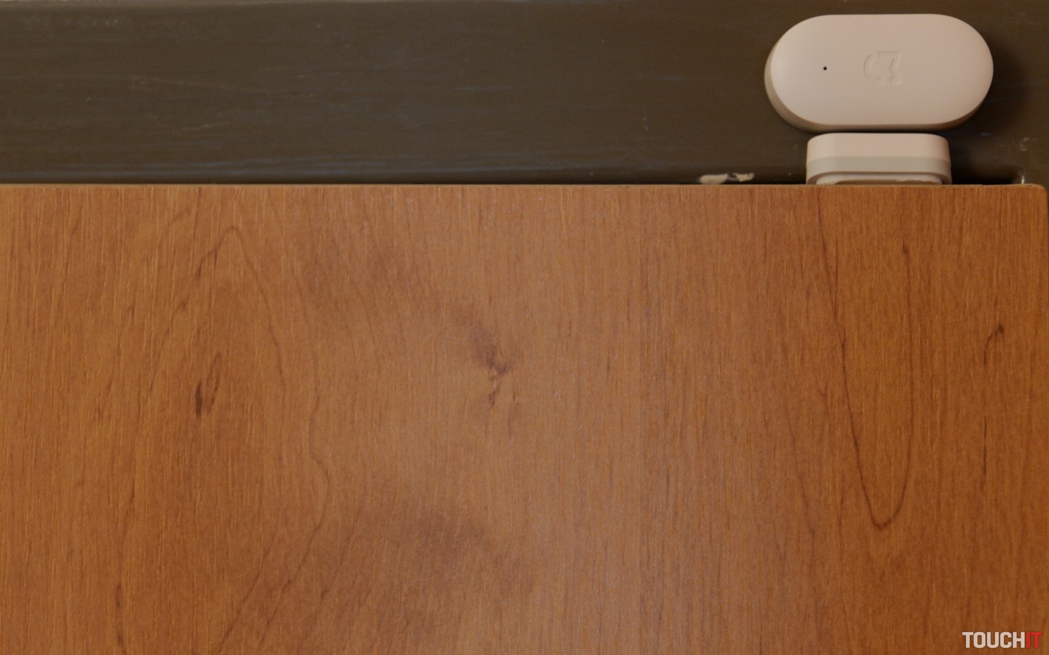 Pokračujeme senzormi,ktoré majú v celom systéme jednoznačnú úlohu a veľmi jednoducho sa inštalujú. Keďže sa pohybové a okenné senzory dajú lepiť, tak v balení nájdete aj náhradné 3M obojstranné pásky – ak by ste ich časom potrebovali premiestniť a pod. My sme senzory rozmiestnili nasledujúcim spôsobom: jeden dverový senzor sme dali na vstupné dvere a druhý na balkónové – aby boli pod dohľadom hlavné vstupy. Senzory sa lepia, takže inštalácia je zväčša veľmi jednoduchá. Dverové/okenné senzory sa skladajú z dvoch častí – jednu, tú menšiu, nalepíte na pohyblivú časť (dvere) a tú druhú, väčšiu časť, nalepíte na zárubňu alebo okenný rám – vždy v optimálnej vzdialenosti. Aby boli v dobrom kontakte, tak by to nemalo byť viac ako 1 cm od seba.