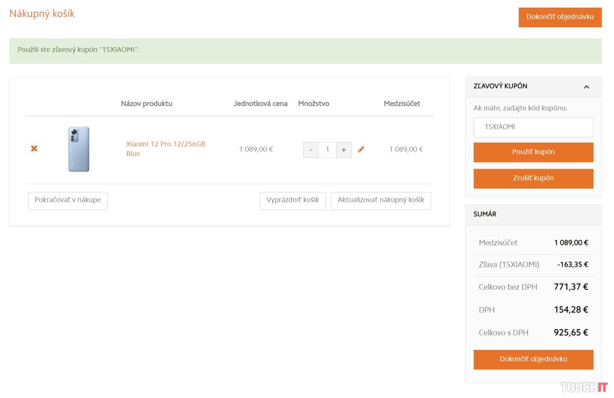Vďaka zľavovému kódu 15XIAOMI si môžete napríklad zakúpiť aktuálnu vlajkovú loď, smartfón Xiaomi 12 Pro, s 15 % zľavou. Plná cena tohto telefónu v konfigurácii 12/256 je 1 089 eur. So zľavovým kupónom sa cena zníži na 925,65 eur.
