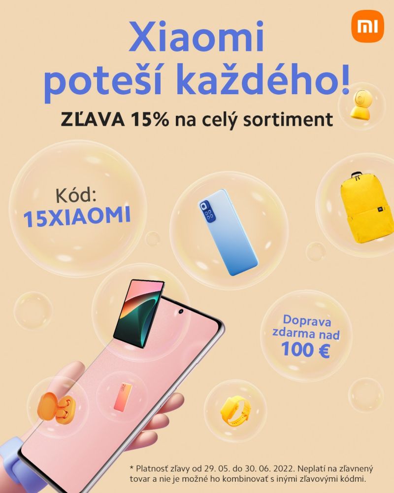 Xiaomi spustilo na Slovensku lákavú zľavovú akciu, ktorá prebieha od 29. mája do 30. júna 2022 v oficiálnom obchode Mi STORE SK. V rámci tejto zľavovej ponuky môžete získať 15 % zľavu na celý sortiment Xiaomi produktov.