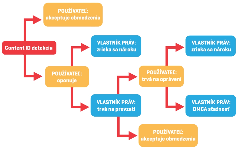 Ak je vaše video odstránené na základe Content ID požiadavky, môžete situáciu akceptovať, alebo k nej vzniesť námietku. V prípade námietky vaše video zostáva naďalej zablokované a pôvodný zadávateľ má 30 dní na vyjadrenie. Následne môže uznať svoje pochybenie a Content ID požiadavku stiahnuť, alebo ju naopak potvrdí (zväčša tak, že manuálne overí, že automatický detekčný systém sa nezmýlil a naozaj má na daný obsah právo). Ak máte stále pocit, že ste v práve vy, môžete vzniesť druhú námietku, ale len v prípade, že momentálne nemáte vznesené námietky ku viac ako trom videám súčasne. Ak si majiteľ práv stojí za svojím, pokračuje DMCA požiadavkou, ktorá môže vyústiť do žaloby, tak ako sme popisovali v predchádzajúcom ochrannom mechanizme.