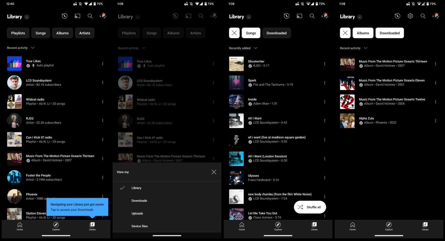 Stále bude dostupná aj ponuka rýchleho prístupu Zoznamy skladieb, Piesne, Albumy a Umelci, ktoré môžete filtrovať v zozname, ktorý tvorí zvyšok tejto stránky. Výberom prvých troch možností sa zobrazí nový filter Prevzaté, zatiaľ čo k Umelcom pribudne filter Odbery. To však nie je ani zďaleka všetko.